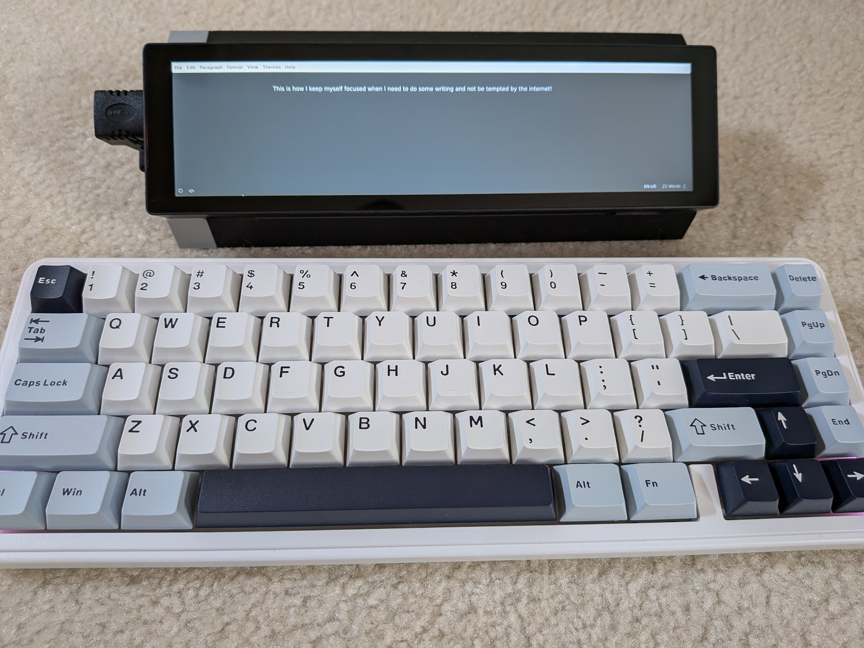 I love me a typewriter. They’re gorgeous, mechanical works of art. Sadly, they’re loud, and I’m just not as fast on them as a keyboard. So, I made a “Writer Deck,” a subspecies of cyberdeck, the science-fiction-spawned concept of a small, self contained compute device that’s hyper-portable and often kept on one’s person. Writer decks deemphasize general computing and instead focus on distraction-free systems optimized for focused writing and composing. I’ve been writing some more fiction lately, and I’m an easily distractable man (I mean, c’mon, it’s the internet – it’s awesome!). So I made myself one: