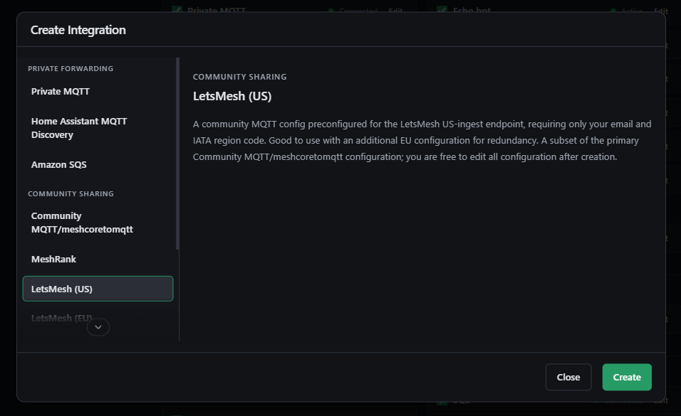 You can have as many observer entries as you want. Some other community aggregators have their own presets, but any aggregator that supports the functionality of meshcoretomqtt can be configured to work with RemoteTerm via the general “Community MQTT/meshcoretomqtt” integration. When that integration is selected, you can configure the MQTT reporting that the aggregator needs, however.