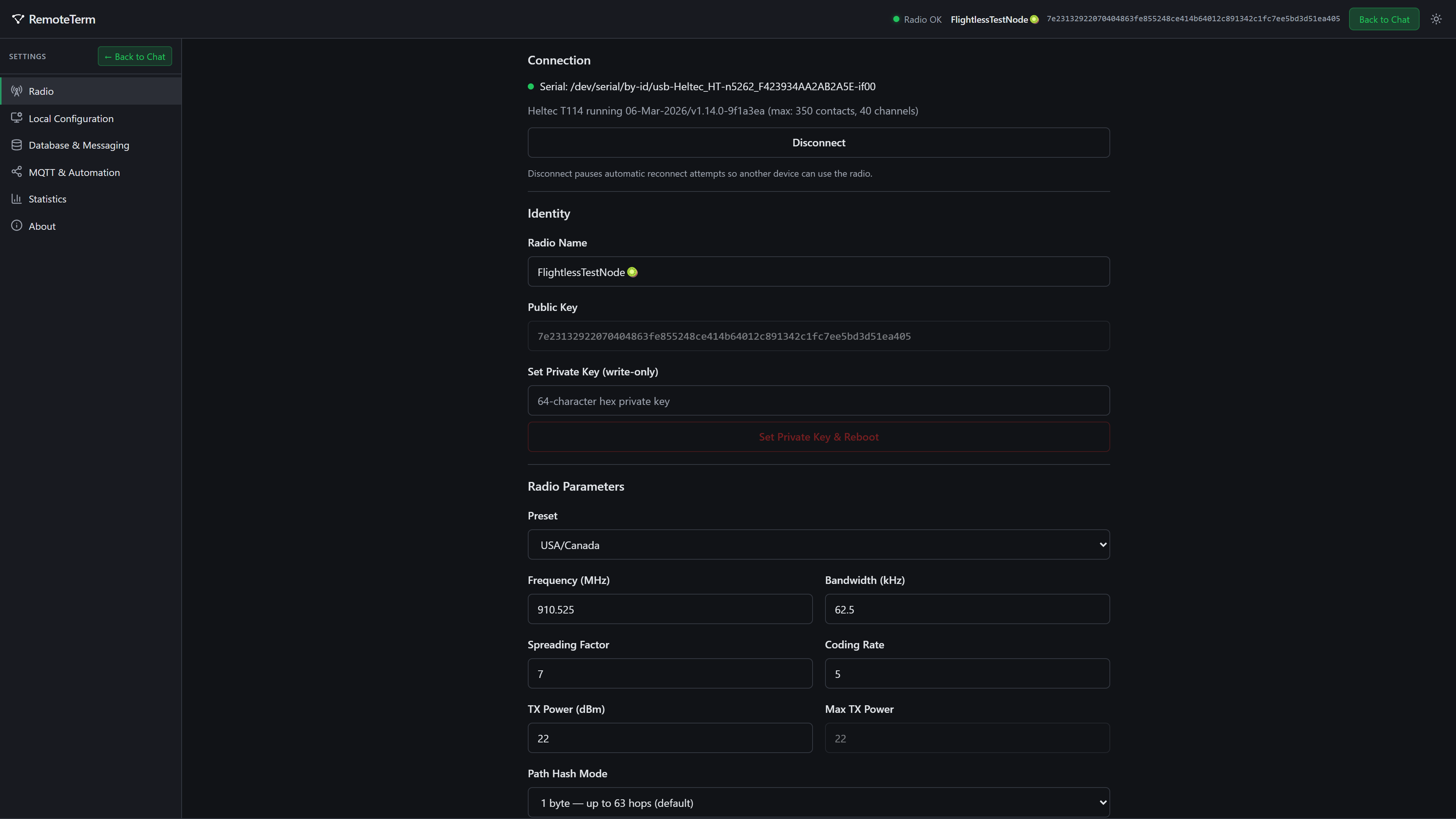 The existing clients were alright, but weren’t quite doing it for me. So, I built Remote Terminal for MeshCore (RemoteTerm), an open-source application that runs on a server with a connected MeshCore radio. RemoteTerm provides an interface to the local MeshCore mesh, allowing any device on the same local network to send and receive messages via the radio. It’s extremely mobile-friendly, and also enables additional abilities such as: